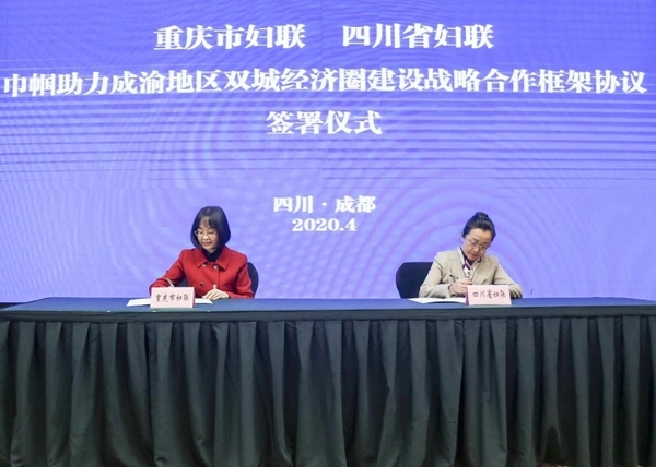 4月22日,四川省妇联与重庆市妇联在成都签订巾帼助力成渝地区双城经济圈建设战略合作框架协议。川渝妇联将多领域开展协同合作,为推动成渝地区双城经济圈建设汇聚巾帼力量。