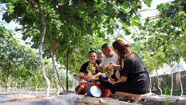“园区主要种有美人指、巨玫瑰、蓝宝石等品种,葡萄品质好、糖分高、口感佳,越来越受到消费者的欢迎。”彭中福说,“目前园区20多亩葡萄基本成熟上市,游客和市民可以过来放心采摘、品尝。”