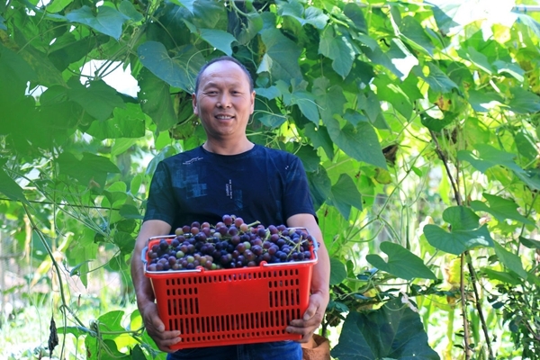 2017年,在帮扶单位、乡镇、村社的支持下,彭中福投资60多万用于发展葡萄产业园。发展至今,葡萄园种植规模已有20亩,年均可产葡萄20余吨,年收入达到20余万元,还带动10余户贫困户发展葡萄种植。