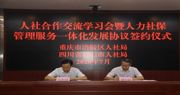 7月20日,记者从眉山市人力资源和社会保障局获悉,日前该局已同重庆市涪陵区人力资源和社会保障局签订《关于推动眉涪人力社保管理服务一体化发展协议》,未来两地将从人才、就业、社保、法制和党建等方面开展合作,推动两地人社事业高质量、一体化发展。