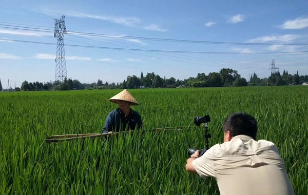 传统水稻赶花粉。 黑石 摄