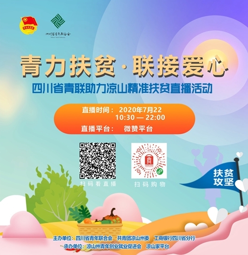 为深入挖掘我省直播电商促消费扶贫潜力,推动优质农产品开辟线上线下融合新业态、新模式,7月22日,“青力扶贫·联接爱心”四川省青联助力凉山精准扶贫直播活动正式启动。