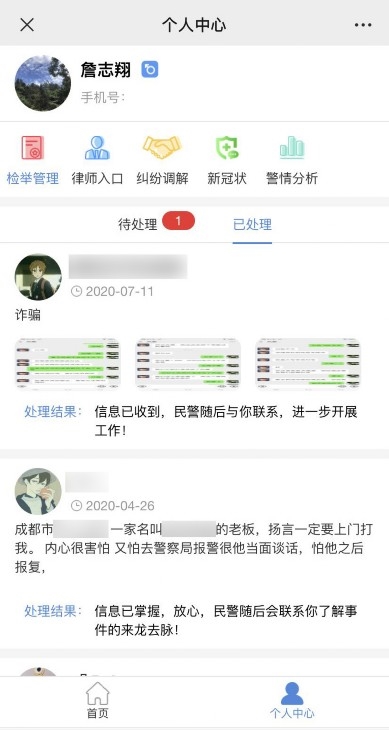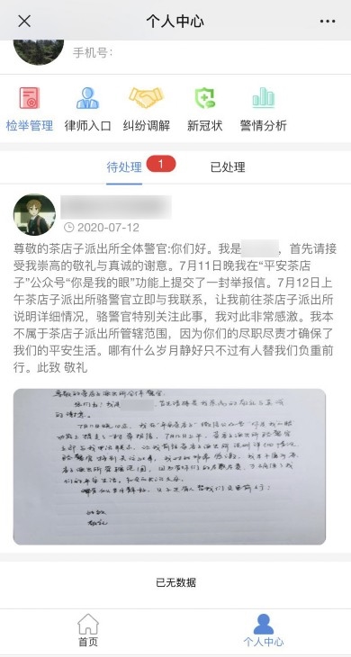 茶店子派出所辖区面积仅4平方公里,人口却超过14万人,所管辖“一品天下大街”商圈等重要位置,各类警情高发。一年来,派出所陆续对该线上平台进行补充和完善,目前已推出“你是我的眼”“枫桥式纠纷调解室”“蓉警服务”“法律服务”“新冠咨询”等功能。小到不文明养狗、邻居水管漏水,大到人员聚集、非法购买散装汽油等信息,派出所均能快速反应,及时处置。