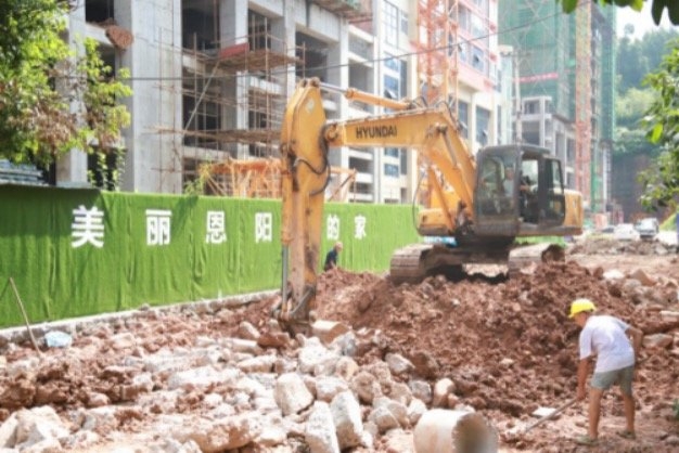 挖掘机长臂挥舞,不停地进行路基开挖和平整作业,施工人员忙碌不停,同步对道路两侧燃气和雨污水管网进行埋设和窨井修建......8月11日一早,恩阳区登科路西三巷改造工程现场就是一派热火朝天的景象。