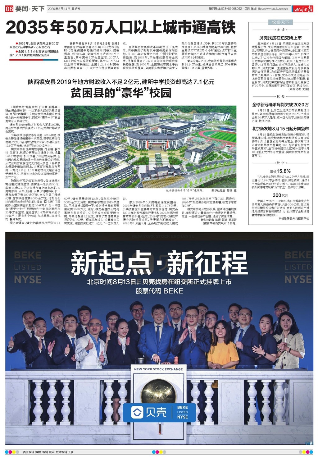 北京时间8月13日,中国线上线下一体化房产交易服务平台贝壳找房(股票代码为BEKE)正式登陆纽交所,IPO首日收盘大涨约87%,股价报37.44美元,市值约422亿美元。