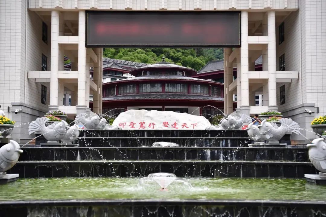 但校园内比较显眼的是一些与教学无关的设施:从气派的仿古牌坊式大门进入校园,4层喷泉水景沿步道拾级而上,16尊石刻鲤鱼分布两侧,一方约8米长、1.5米高的校训大理石碑位于喷泉尽头。据学校工作人员介绍,该水景取“鲤鱼跳龙门”之意,从西安拉来的校训石碑就花费了五六万元。