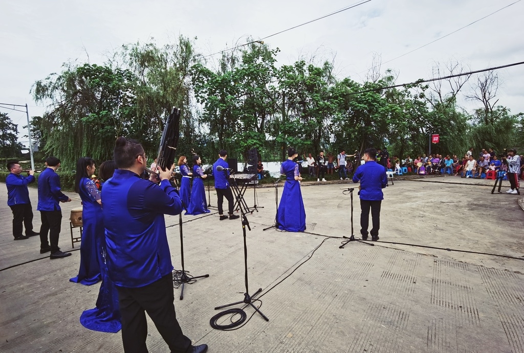 伴着碧绿荷塘边的习习凉风,农家院坝里的大叔大婶们围坐在一起,他们没有像往常一样摆起龙门阵,而是沉醉在了美妙的音乐声之中。8月14日下午,由四川音乐学院主办的“行走天府——大地艺术季”走进龙泉驿区洪安镇土门村,为当地的村民朋友带来了一场民族器乐专场音乐会。
