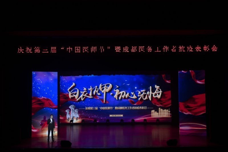 8月15日下午,由成都市卫健委、成都市科协、成都市民政局指导,成都市医学会和成都市医师协会等7家医学(协)会联合举办了庆祝第三届中国医师节暨成都医务工作者抗疫表彰会。