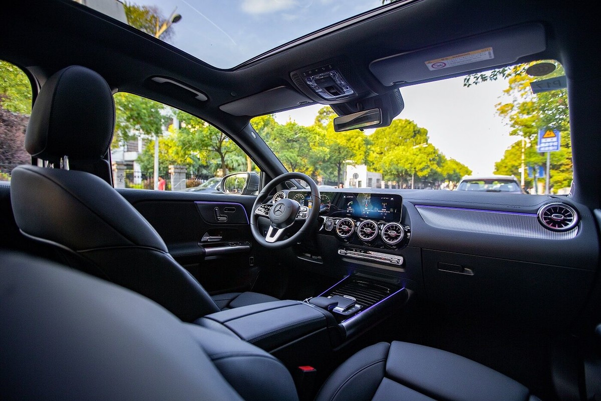 全新GLA SUV车内大面积采用软性材质覆盖,搭配双10.25英寸连屏、64色氛围灯以及镀铬饰件的点缀,整体豪华感十足。
