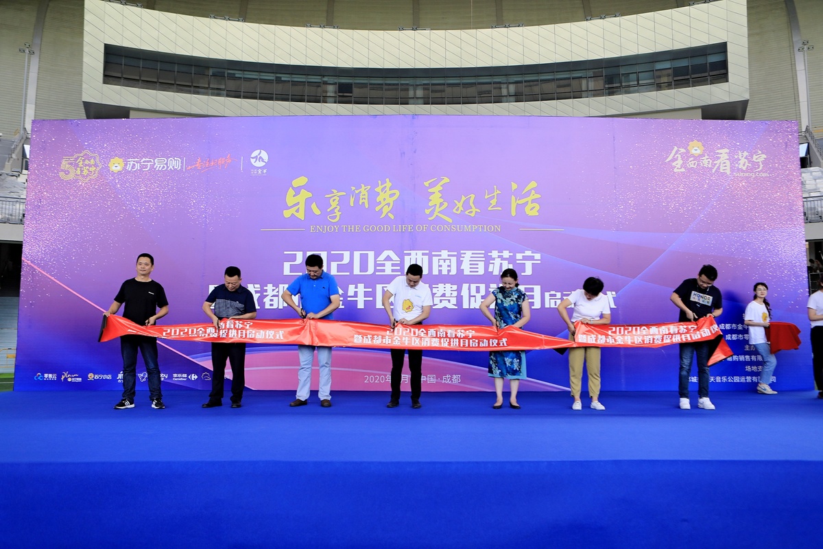 8月20日,由成都市金牛区商务局和成都市零售商协会指导,四川苏宁承办的成都市金牛区消费促进月启动仪式暨“全西南看苏宁”活动在成都露天音乐公园举行。