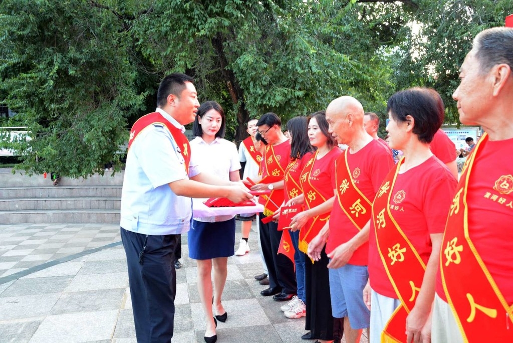 当天晚上举行的龙泉驿区新时代好人街区建设启动暨首届滨河社区好人颁奖仪式上,中国好人陈靖等现场为22名党员先锋、30名社区好人、19家社区好商家进行了颁奖;现场讲述了社区好人王明元的感人故事并穿插了文艺汇演;组建了滨河社区好人志愿服务队并授旗。