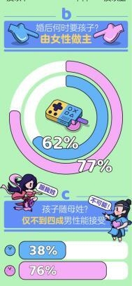 关于孩子的问题大多数人们在婚姻生活中不得不面临。虽然男女双方在生育意愿上都是平等,但最终由谁“拍板”却是一直争论不休。报告显示,生育权方面,女性越来越占据更多的话语权;如果在婚前意外怀孕,55%的男性与64%的女性认为“流产的决定权在于女方”。