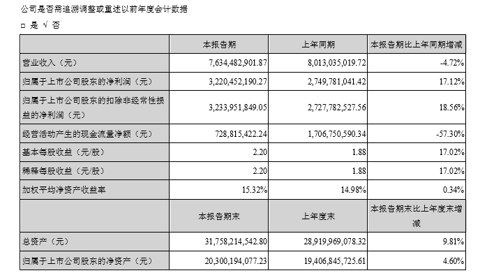8月27日,泸州老窖在深交所披露的公司半年报显示,2020年上半年,泸州老窖呈现营收降利润增态势——实现营业收入约为76.34亿元,同比下降4.72%;归属于上市公司股东的净利润约为32.20亿元,同比增长17.12%。