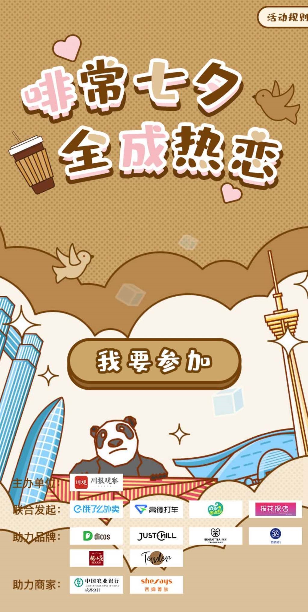 基于创意设计、异业资源创新嫁接、时髦小程序及朋友圈推广,可以说,“啡常七夕 全成热恋”——3000+杯咖啡/奶茶免费派送活动成为了川报观察系列活动中一个新“爆款”。
