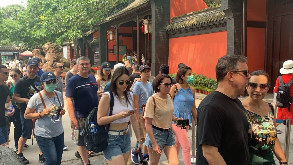 记者了解到,此次行程为期3天,落地首日外籍旅行团就走进了代表三国文化的武侯祠、锦里,同时还将参观中国唐代大诗人杜甫流寓成都时的故居杜甫草堂。