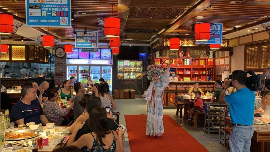 在品尝火锅的间隙,外籍游客们观赏了传统川剧,席间不时传来混杂着各国语言的喝彩声。“变脸真是太有趣了,居然可以不停地变换出各种脸谱,比魔术还神奇!”第一次来到四川的美籍游客凯莉·克拉克兴奋地告诉记者,这也是疫情以来她第一次离开北京。在谈到对于对于四川“初体验”时,凯莉表示除了各种令人印象深刻的美食,她在这里还感受到了更加多元的中国文化。