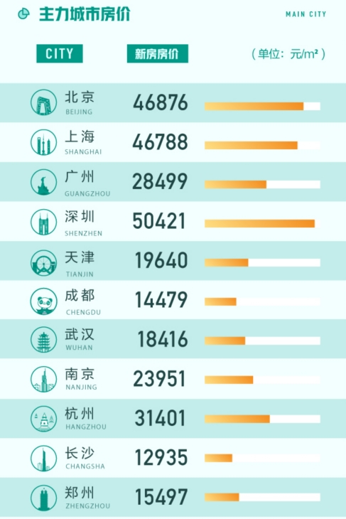 58同城、安居客《8月国民安居指数报告》显示,8月67城新房在线均价为16481元/㎡,环比上涨0.14%,在67城中有33城新房在线均价环比上涨。主力城市中深圳相比上月略微下降,新房在线均价为50421元/㎡。