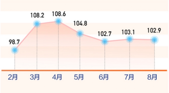同时,8月份三居室找房热度占比持续小幅上涨,占比47.0%;一居室、二居室找房热度占比下降。另外,8月份购房者信心指数为111.7,环比上涨1.9%。