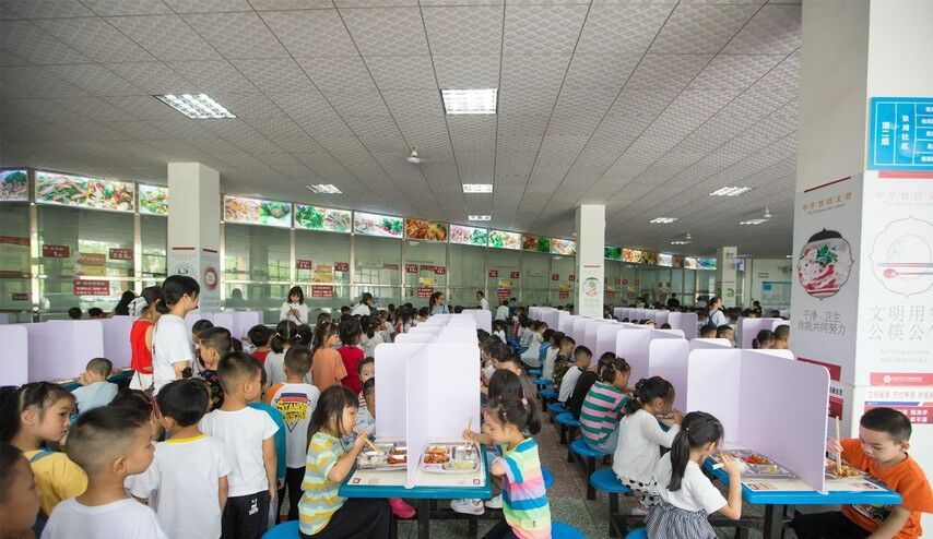 由于目前老师对孩子们的饮食习惯还没完全掌握,个别孩子存在挑食等现象,因此,今天中午食堂窗口工作人员给学生打饭菜时采取“少量多添”方式。记者在现场见到,当天的菜品是回锅肉、豆腐还有冬瓜,绝大多数学生用完餐后,餐盘里并没留下多少食物,个别学生还找到老师询问“没吃饱,可不可以再添”。