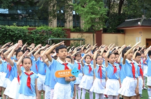本次开学典礼,融合礼仪教育、生命教育、劳动教育、绿色环保教育、家国情怀教育、世界胸怀教育,践行着培养“爱家爱国爱劳动、向上向好向未来”的新时代好少年这一教育使命。