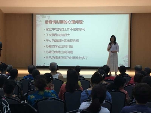 隔代教育作为一种客观存在的家庭教育方式,随着疫情常态化防控,工人复工,孩子复课。在开学季来临,如何处理家庭隔代教育以及关注中老年人心理健康?2020年9月4日上午,五福桥社区特邀国家二级心理咨询师、高校心理健康中心心理咨询师、国际萨提亚家庭治疗模式培训师张莉老师,在成都(伽地)社区音乐厅为辖区居民举办了后疫情时代“中老年人心理健康关爱及家庭隔代教育”专题讲座。