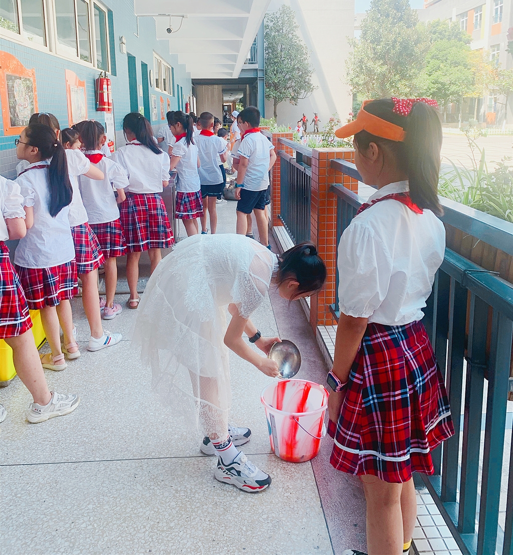 香城小学通过开学典礼、红领巾广播站、学校LED显示屏、主题班会和少先队活动课等多种途径,让节约意识在全校师生中入心入脑。还通过学校行政领导陪餐制度落实“光盘行动”,做到“先禁其身而后人”。为保证“光盘行动”落实有效,香城小学为各班发放一个标有刻度“光盘行动量化桶”,学生将残渣剩饭倒至各班桶中,直观呈现各班“光盘行动”结果。