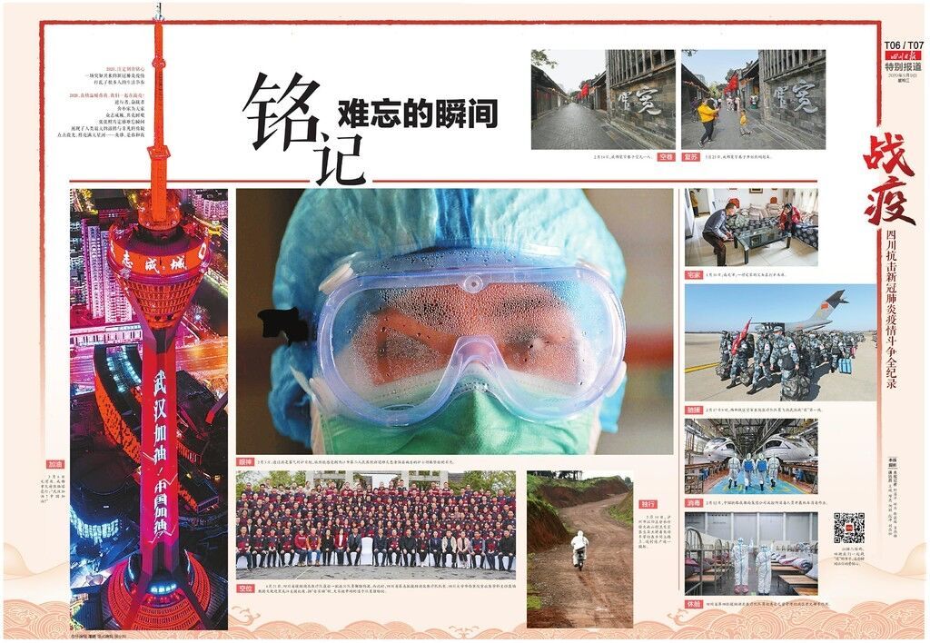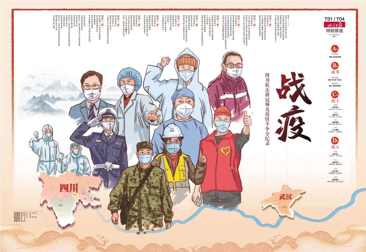9月9日,四川省委机关报——四川日报推出16个整版的特别报道《四川抗击新冠肺炎疫情斗争全纪录》,回顾四川经历的“战疫”大考,致敬战斗在抗疫一线的英雄,复盘惊心动魄的战斗细节,弘扬伟大抗疫精神。