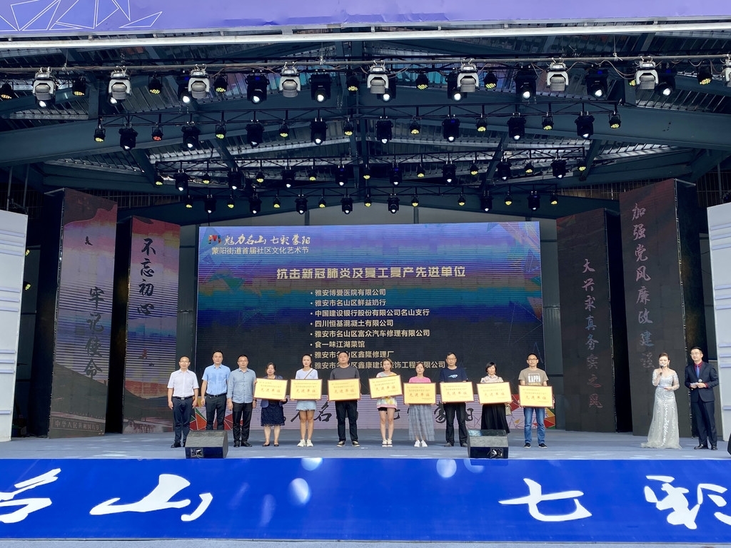 开幕式上,蒙阳街道还为辖区内抗击新冠肺炎以复工复产先进单位进行了授牌。