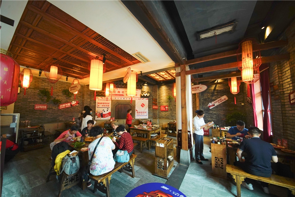 川宝的形象在火锅店里时时入眼,从墙贴、地贴、吊旗到菜品,都有这只胖滚滚的身影。不少吃火锅的顾客,也发现了这个“编外”服务员,打趣地说:“四川果然熊猫多,连火锅店的服务员都是大熊猫。”