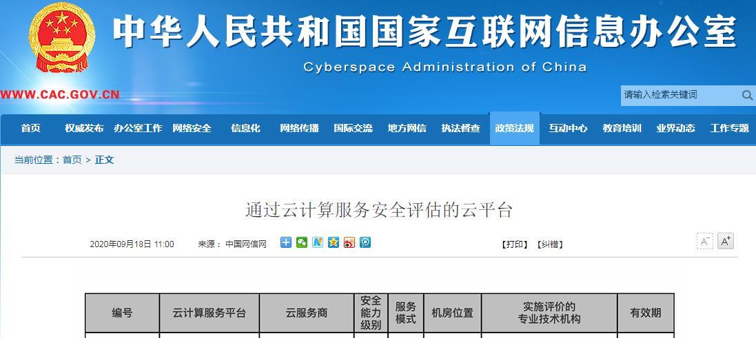 9月23日,记者获悉,在国家网信办日前公布的《通过云计算服务安全评价云平台》名单中,包括成都电子政务云平台(二期)、四川省政务云(H3C云)、紫光天津政务云平台等在内的多个云平台已通过国家云计算服务安全评估,获得相应资质认证。