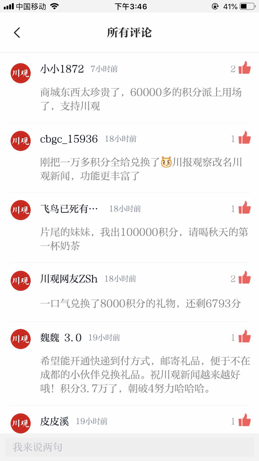 “之前不知道川观积分有什么用,这下安逸啦”