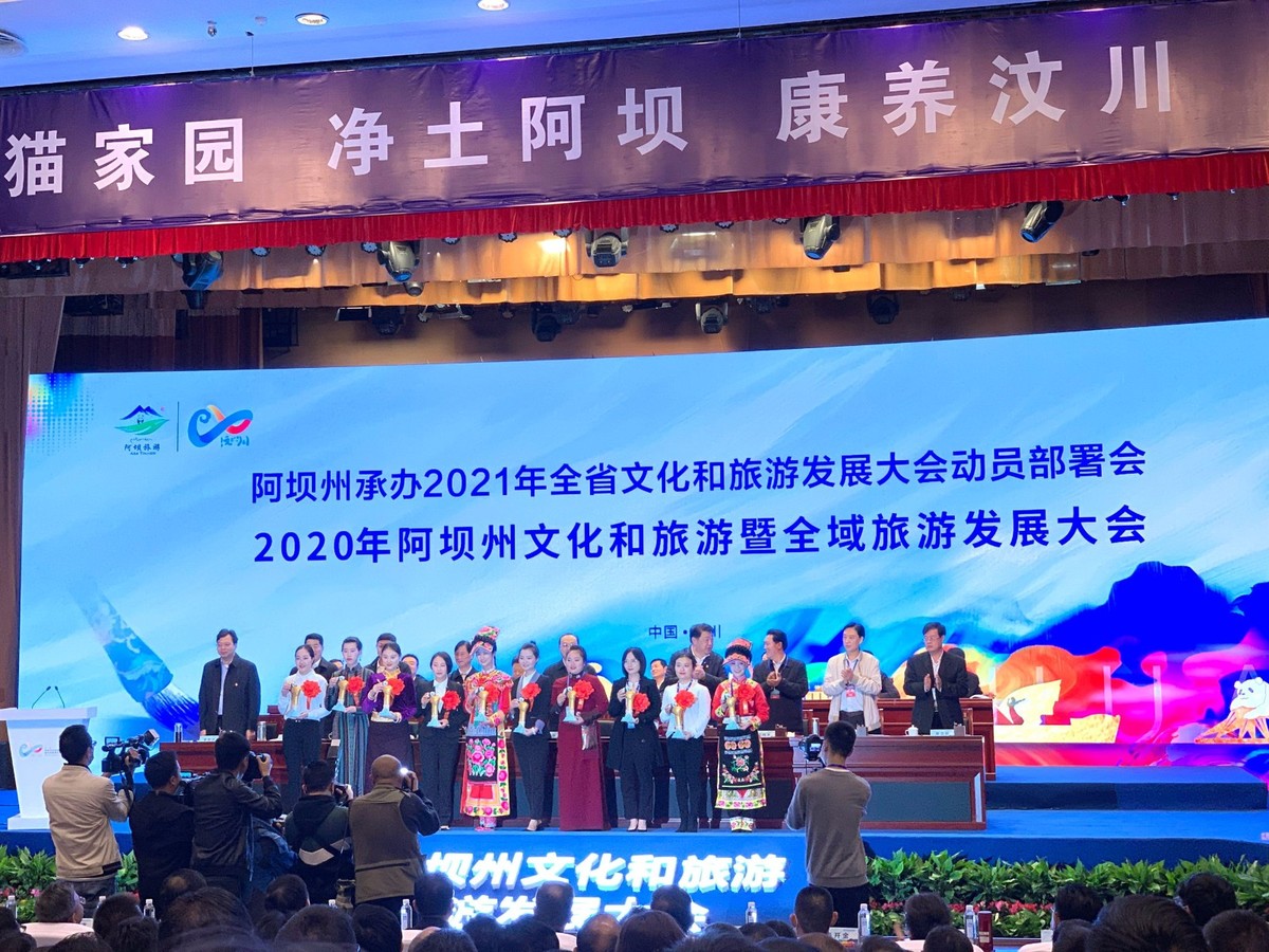 10月9日,在2020年阿坝州文化和旅游暨全域旅游发展大会上,阿坝州文化和旅游产业发展领导小组对阿坝州首届A级旅游景区文创产品设计大赛获奖单位、金牌导游(讲解员)、以及优秀文旅企业进行公布并授奖。