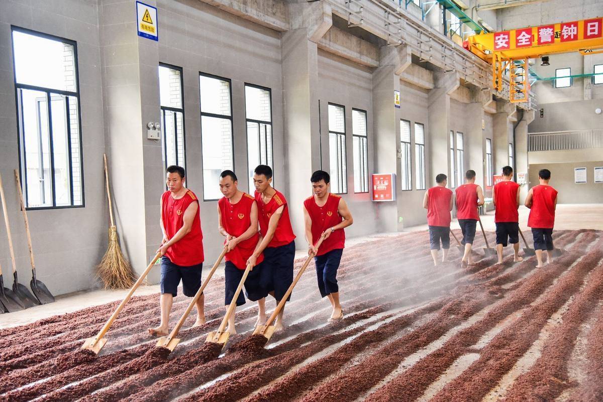 上午11时,2020年郎酒重阳下沙仪式隆重启动,吴家沟生态酿酒区郎15车间外鼓声阵阵,酒旗飘扬,车间内蒸汽蒸腾,酿酒工人严阵以待,投下2020年第一批红粮。在这之后,还要经历九次蒸煮、八次发酵、七次取酒的繁复生产工艺,历时一年后方能酿成。随后,初生的原酒还要通过露天坛储、山谷罐储、室内坛储、天然洞藏的长期储存后才能上市。经过生、长、养、藏,辗转到消费者杯中时,瓶中的郎酒已历经7年以上的时光。