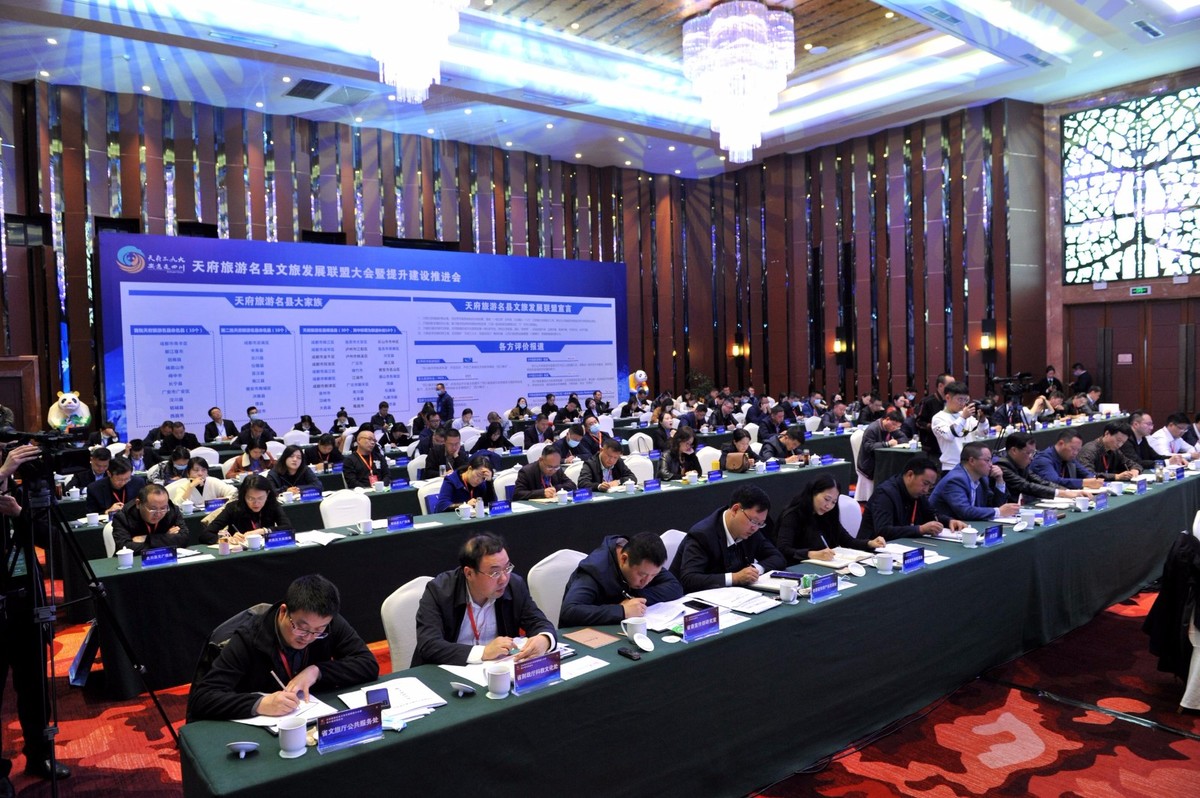 省委宣传部副部长,省文化和旅游厅党组书记、厅长戴允康主持会议,眉山市委书记慕新海致辞。天府旅游名县文旅发展联盟首届联盟理事长单位都江堰市总结汇报了联盟成立以来工作开展情况,新一届联盟轮值理事长单位洪雅县代表全体联盟成员宣读了《天府旅游名县文旅发展联盟宣言》,第二批10个命名县围绕做实、叫响、擦亮“天府旅游名县”金字招牌进行了汇报,九寨沟县作为30个候选县代表发言。省发改委、财政厅、自然资源厅、住建厅、交通运输厅等有关部门就落实天府旅游名县激励政策进行了发言。