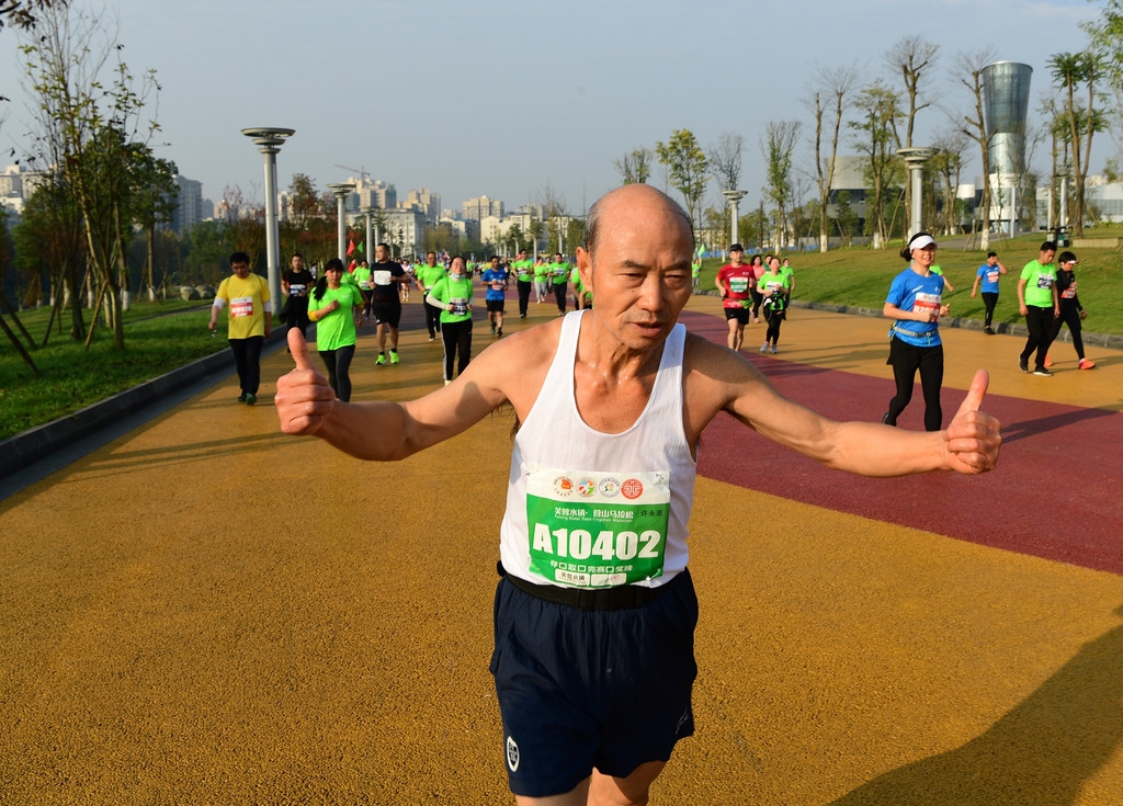 来自成都的李建华今年63岁了,他参加此次马拉松的“全马”项目。李建华说,他很喜欢在营山跑马拉松时贴近大自然的舒适感受。