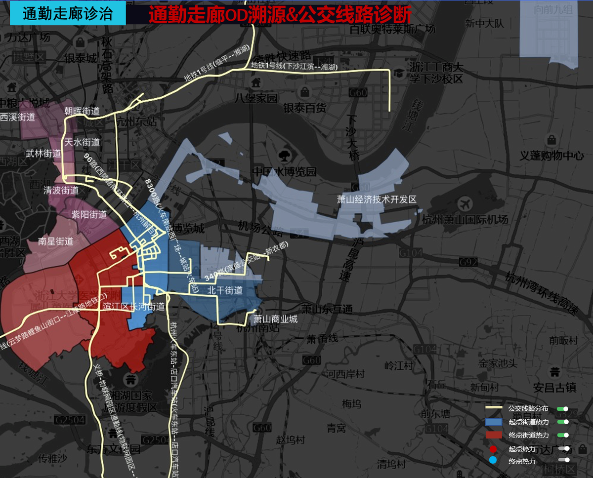 通勤作为居民日常出行最主要的场景之一,高峰时段的通行效率是影响城市交通运行健康状况和居民出行舒适度的关键因素。通过交通“评诊治”系统扫描,可自动发现易拥堵的通勤路段和拥堵关键节点,结合对该路段公共交通的整体分析,可整体输出缓堵方案,包括通勤出行特征分析、拥堵节点红绿灯评价及优化建议、定制公交和微循环巴士开设方案等。