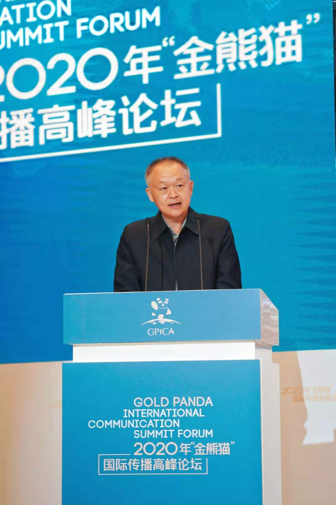 2020年“金熊猫”国际传播高峰论坛在成都举行,论坛以"中国故事 国际传播"为主旨,力邀专家学者、业界大咖,紧紧围绕"国际传播“进行深入交流研讨。中央广播电视总台影视译制中心主任任谦就《坚守人类共同价值观 做好影视文化国际传播——“后疫情时代”国际传播工作的思考》做了主题分享。