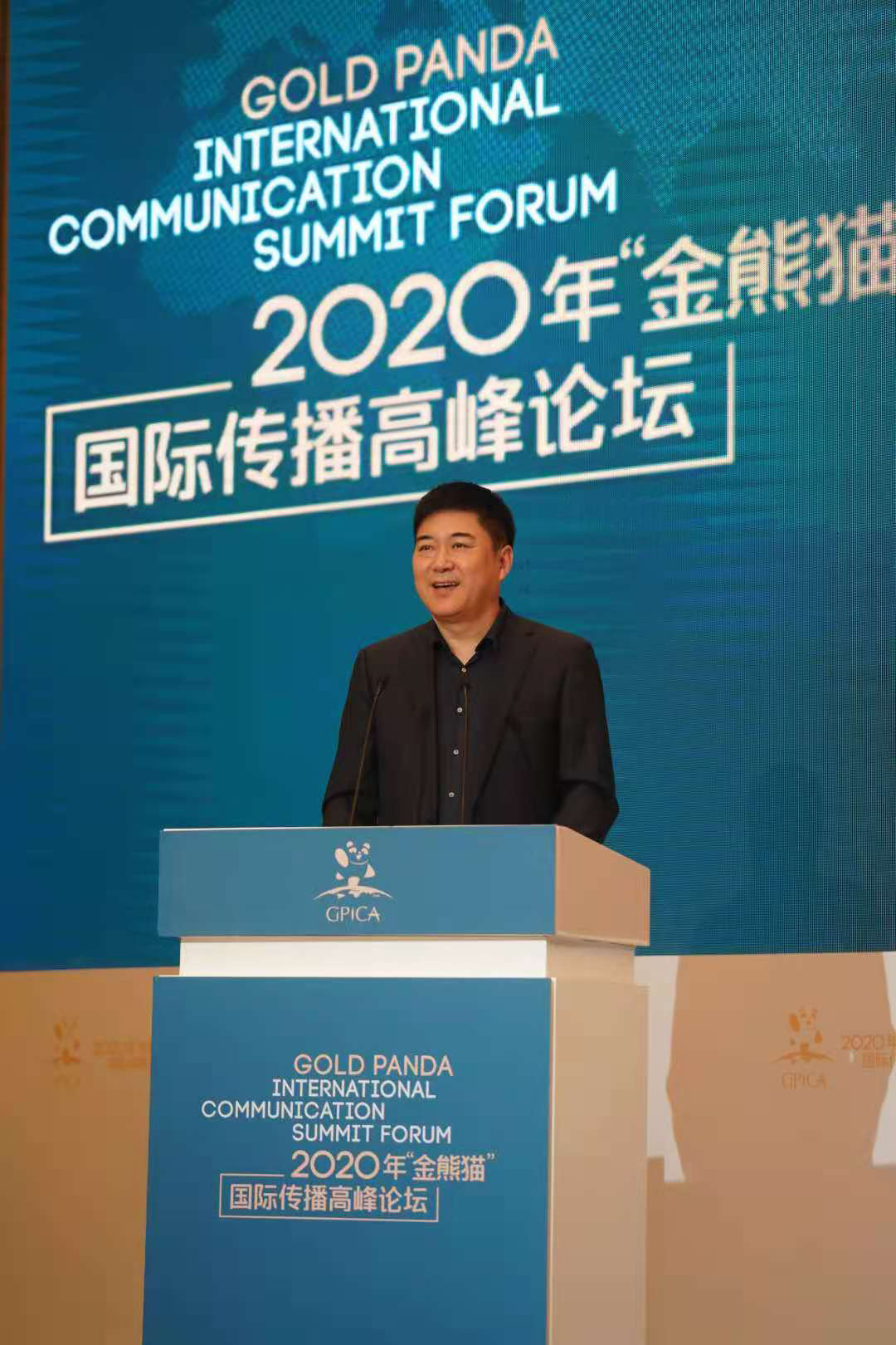 2020“金熊猫”国际传播高峰论坛上,博纳影业行政总裁蒋德富在主题演讲中分享提到,