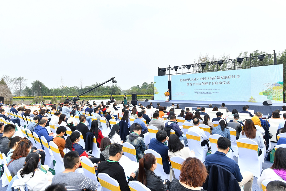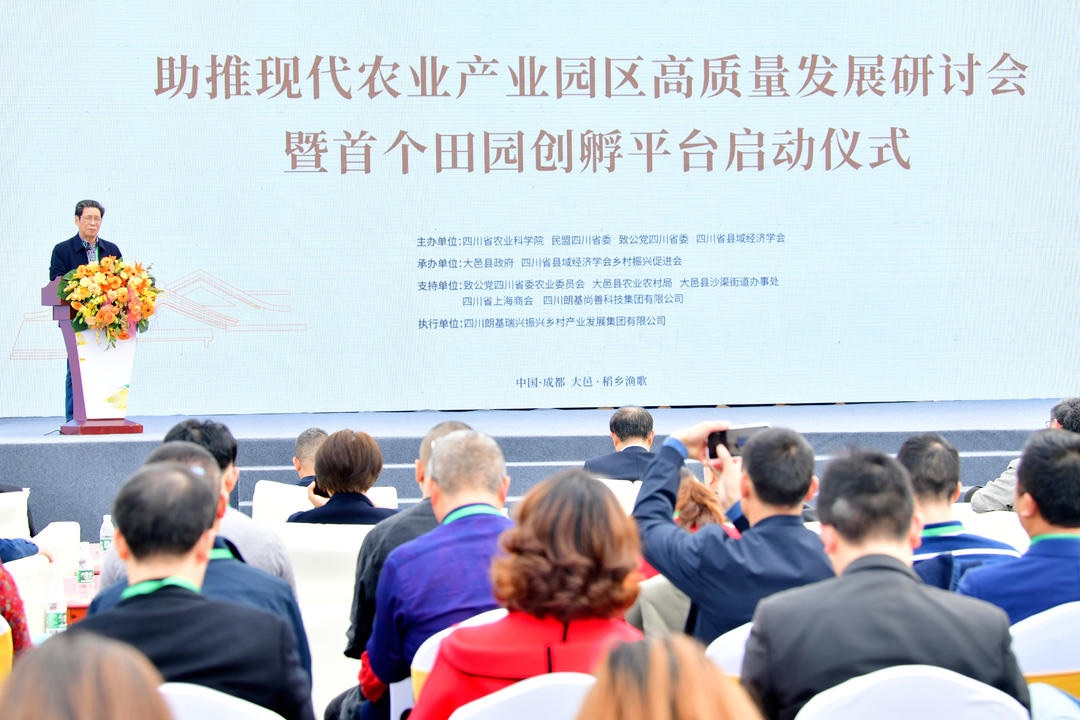 11月12日,由四川省农科院、民盟四川省委、致公党四川省委、四川省县域经济学会主办,大邑县人民政府、四川省县域经济学会乡村振兴促进会承办的“助推现代农业产业园区高质量发展研讨会暨首个田园创孵平台启动仪式”,在大邑县·稻乡渔歌现代农业产业园现场举行。