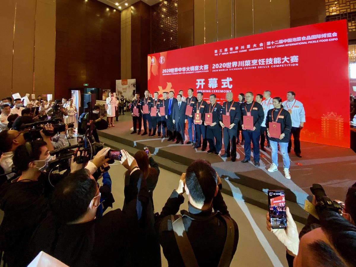 作为本届大会的同期亮点活动,2020世界川菜烹饪技能大赛于当天下午举行。此次大赛邀请了川菜烹饪名厨大师同台竞技,赛事采用国际中餐烹饪竞赛标准,以“公平公正公开”为原则,全面展现当今川菜烹饪最新流行趋势和烹饪水平。