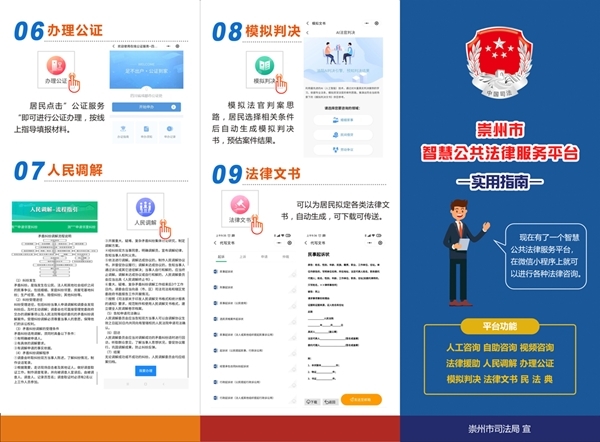 目前,崇州市智慧公共法律服务平台已正式上线运行,覆盖全市15个镇街和172个村社区,覆盖率达100%。