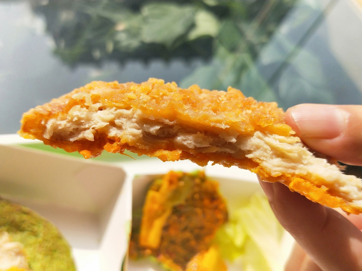 “要不是提前知道这是植物肉,我真吃不出来差别,植物鸡肉堡的香气、肉感和真鸡肉几乎没差别。”11月18日,德克士春熙路门店内,95后白领刘颜正对着绿仙仙植物鸡肉堡,大快朵颐。