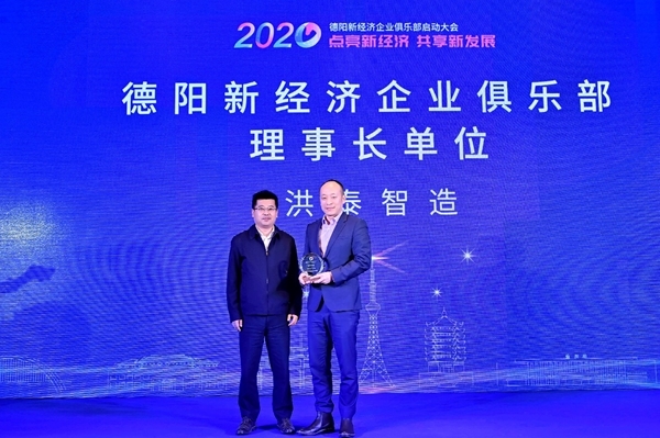 德阳新经济企业俱乐部由洪泰制造创始人乔会君担任俱乐部理事长,成都洪泰智造总经理郭纹伶担任常务副理事长,现有会员企业62家,其中1家理事长单位、6家副理事长单位及55家会员单位。俱乐部成立仪式的活动现场,德阳市委常委、市政府副市长赵兴旺,德阳市人大常委会副主任李芳芳、德阳市政协副主席徐春龙,上海电气集团股份有限公司副总裁、上海电气环保集团党委书记顾治强,德阳市科技局局长张全科,德阳新经济企业俱乐部理事长、洪泰智造创始人乔会君6位嘉宾共同点亮德阳新经济企业俱乐部会标,并进行理事长单位、副理事长单位授牌。