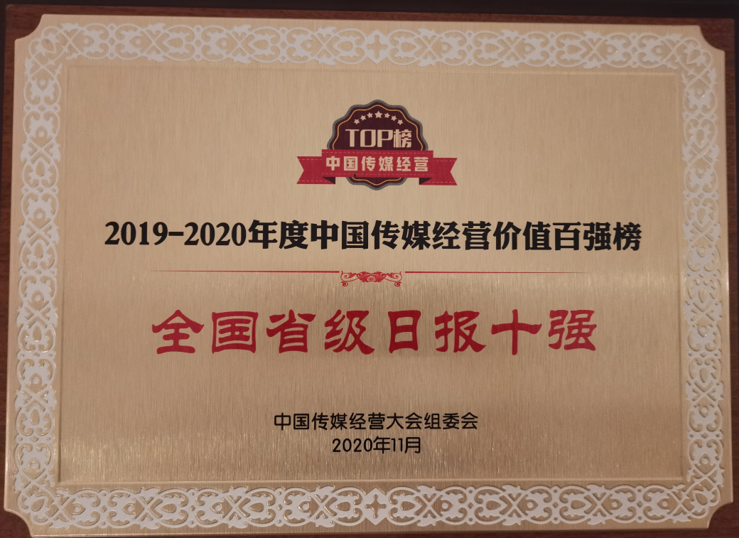 “2019-2020中国传媒经营价值百强榜”发布了全国省级日报十强、全国副省级日报十强、全国都市报二十强、年度智慧融创媒体奖、新媒体四十强等奖项。