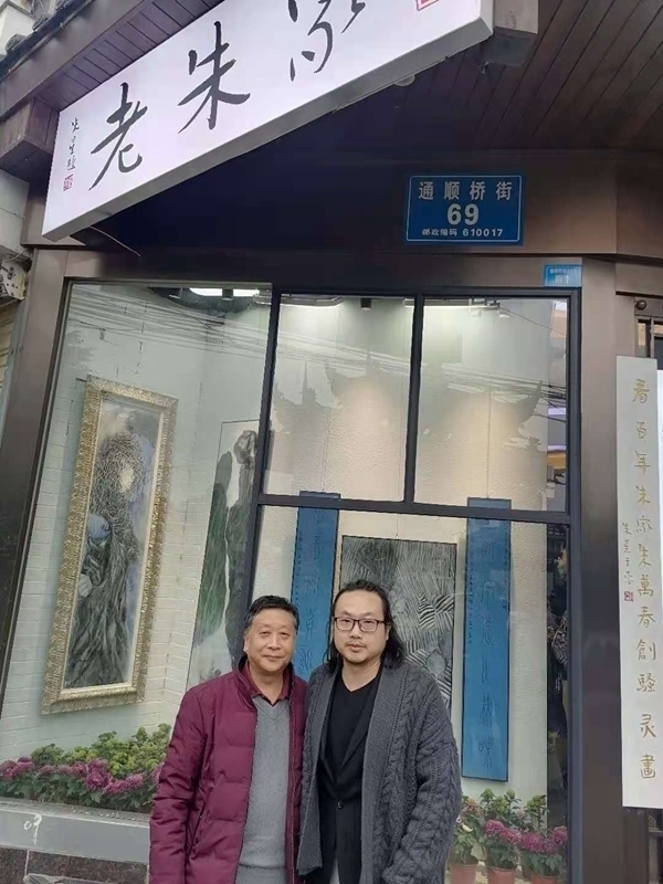 文殊坊是成都有名的“网红打卡地”,“老朱家”就隐匿于这里的一处十字街头。作为本土首家“胶囊美术馆”,它的展厅仅四平方米,却展出了康有为、谢无量、朱佩君、朱欣、何多苓、朱万春等六位名家的12幅书画作品。当天的展览吸引了不少成都本土书画家前来捧场,包括成都市美协主席姚叶红、蓝顶艺术家赵弥等,他们对这家小小的美术馆给予了高度评价。