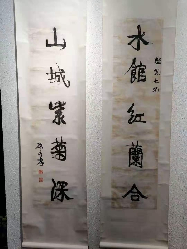 此次展览作品中也有朱佩君当年所作的一幅花鸟小品。而朱佩君的下一代朱家代表人物是朱万春的父亲朱欣,作为本土著名书法家,他曾多次就任中国书法家协会委员会委员。而朱欣有两幅对联佳作参展,和朱欣书法作品并列参展的还有著名当代艺术家何多苓的一幅肖像画,朱欣与何多苓是多年好友,两人年轻时不仅经常切磋画艺,而且多才多艺的他俩还共组乐队,朱欣拉小提琴,何多苓拉手风琴,两人曾多次登台合演屡获好评。朱万春说:“希望这家小小的美术馆让大家看到朱家文脉的传承,更希望它能成为外地人了解成都艺术往事的一个窗口。”