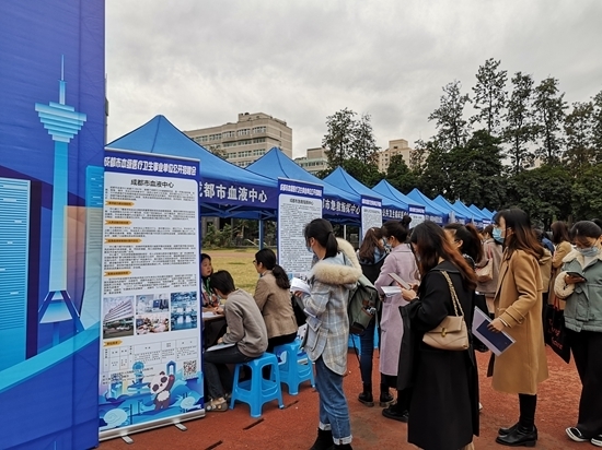 11月21日,2020年成都市本级医疗卫生事业单位公开招聘现场见面会在川大华西校区举办。本次招聘,成都市卫健委13家直属医疗卫生事业单位、成都大学附属医院面向2021年普通高等教育院校医学类应届毕业研究生提供399个专业技术岗位,在今年新冠疫情常态化防控的形势下,此次公开招聘会采用“线上、线下”两种方式同时进行。