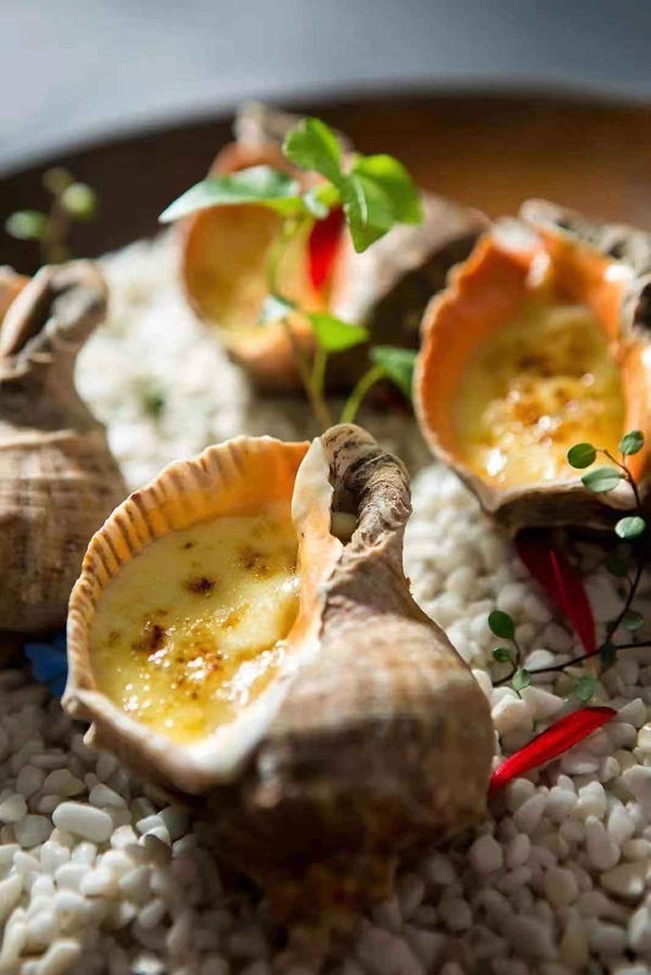 小手端起一颗海螺,勺子舀出一口吞下,嚼劲十足的干巴菌,爽脆的海螺,浓郁的芝士奶香,一通操作直通脑门,好吃到吧嗒嘴。