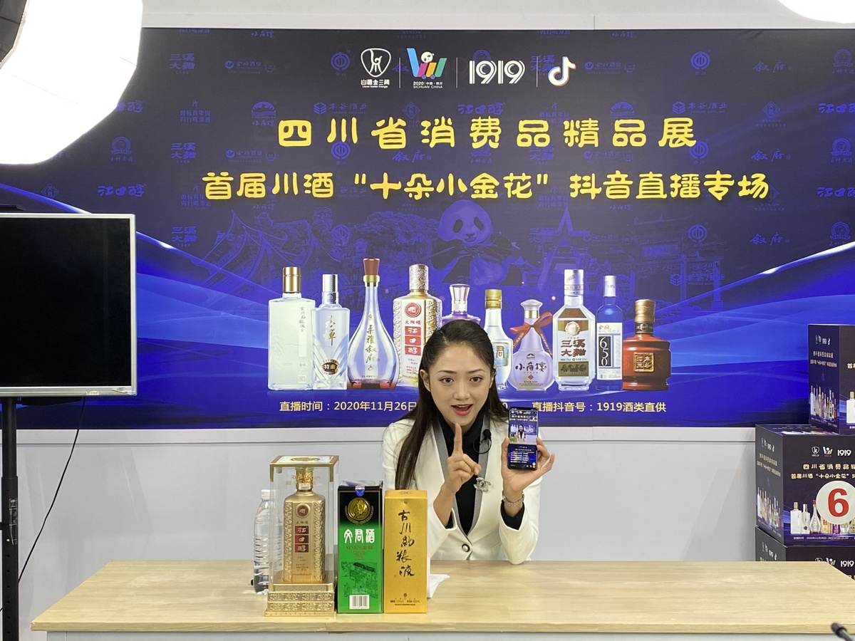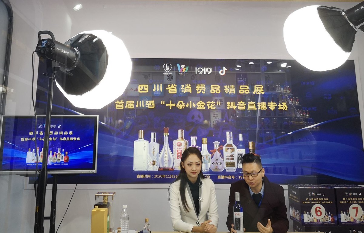 11月26日,首届四川省消费品精品展,在成都世纪城新会展中心开幕,十朵小金花首次集结,并与酒类新零售独角兽1919合作,开启直播带货。