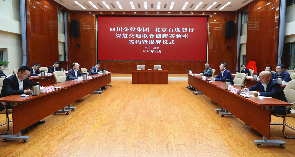 11月30日,四川交投集团携手北京百度智行签署战略合作协议签约,并共同为智慧交通联合创新实验室揭牌。